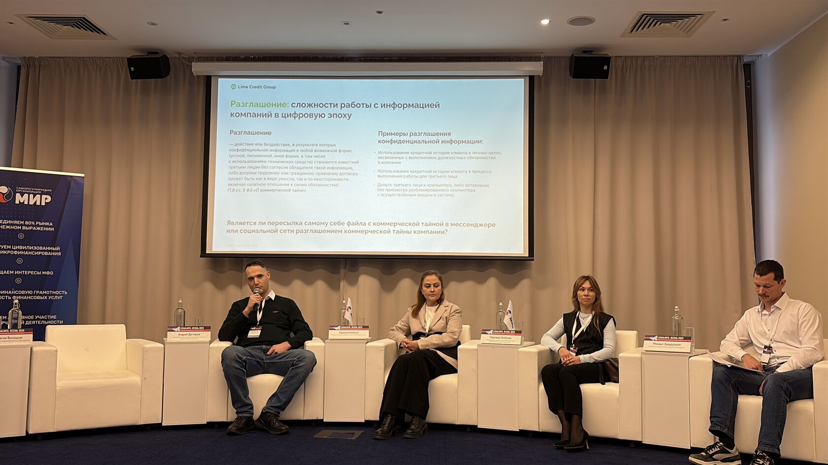 Директор департамента по правовым и корпоративным вопросам группы компаний Lime Credit Group Андрей Дегтярев выступил с докладом «Понятие “разглашение” в цифровую эпоху: разные взгляды бизнеса и работников». Эксперт поделился практическим кейсом одного из бизнес-юнитов группы компаний.